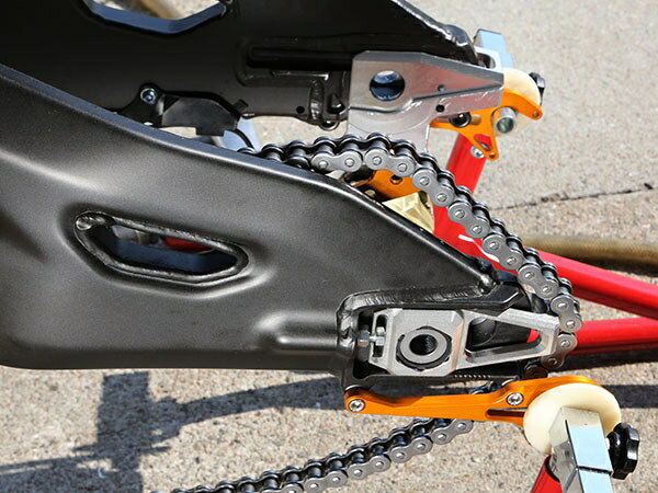 このフックを取り付けていただきますと、リヤホイルを取り外したときにチェーンを掛けることが出来、地面に触れさせることなく作業が出来ます。